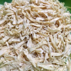 - Cách thủ công: Dùng tay xé sườn non thành từng sợi nhỏ theo thớ. Cách này tốn nhiều thời gian, sợi chà bông thường không đều.